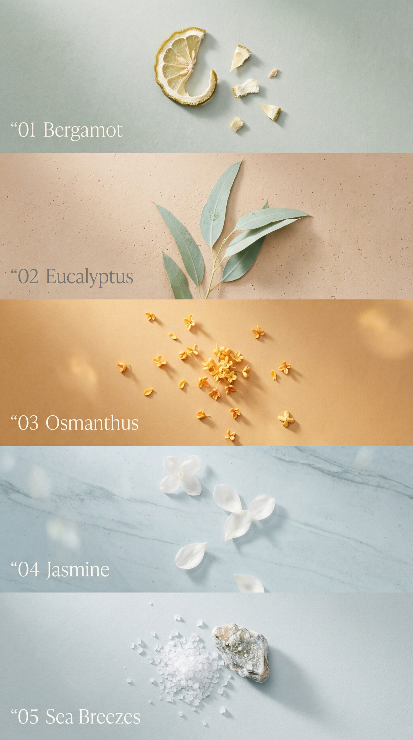 Bergamot, Eucalyptus, Osmanthus, Jasmine, Sea Breezes
