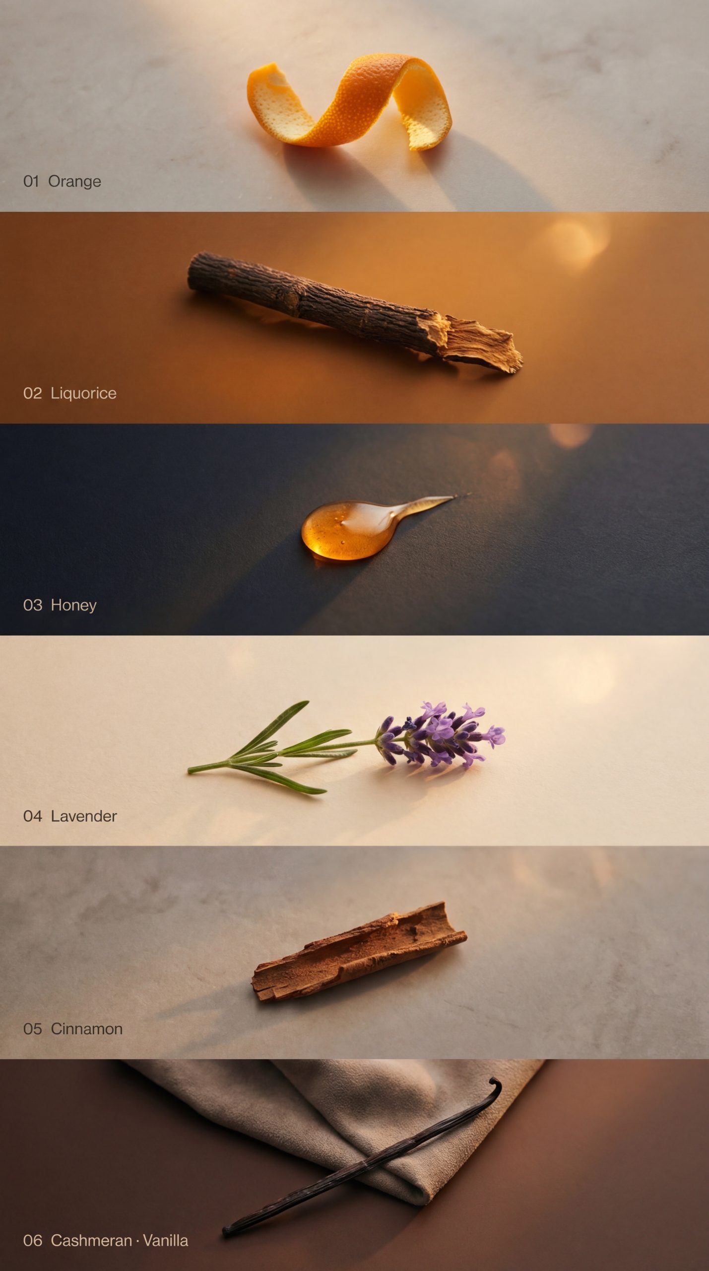 Orange, Liquorice, Honey, Lavender, Cashmeran, Cinnamon, Vanilla